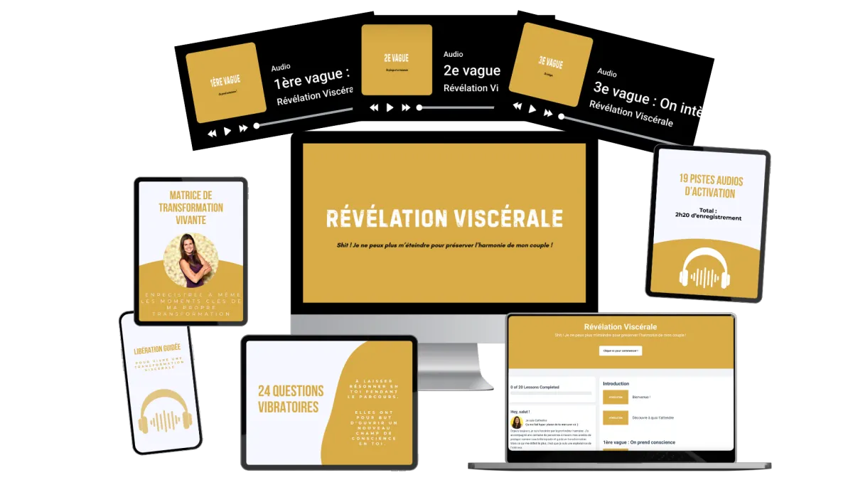 Révélation Viscérale est une expérience vibratoire, conçue pour ceux et celles qui sentent l'appel à se réaligner avec leur essence, sans sacrifier leur couple. Ce parcours s'inscrit dans une démarche de développement personnel et vibratoire. Il ne remplace pas un accompagnement médical ou thérapeutique. Il t'offre un espace de transformation pour explorer ton alignement dans ton couple.